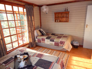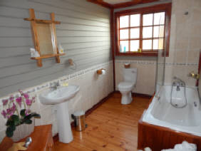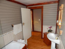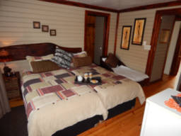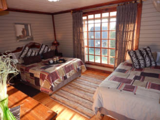 consists of two rooms sharing a bathroom. The bathroom consists of a bath that doubles up as a shower, toilet and basin. It also has its own private entrance. The one room contains a double bed and a single bed. The second room contains twin extra length beds. This suite can accommodate maximum 5 Adults..