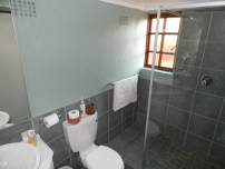 has twin extra length beds, en suite shower and toilet with private entrance.